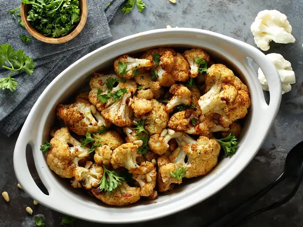 - Σερβίρετε το κουνουπίδι με τη σάλτσα γιαουρτιού.