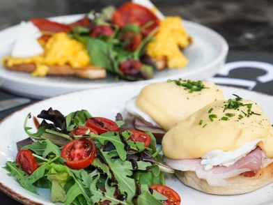 Αυγά benedict, πάνω σε φρυγανισμένο ψωμί, με προσούτο, σως ολαντέζ και σαλάρα με ρόκα, ντοματίνιτα και βαλσάμικο. Το συγκεκριμένο πιάτο ταιριάζει άψογα με μια Heineken 0.0, τη μόνη μπίρα χωρίς αλκοόλ στην ελληνική αγορά, που ζυθοποιείται με τη διαδικασία αφαίρεσης του αλκοόλ.