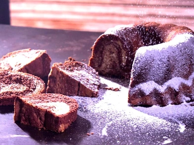 Βάζουμε 3 κ.σ. γάλα μέσα στο μπολάκι με το κακάο και ανακατεύουμε μέχρι να διαλυθεί και να γίνει πάστα σοκολάτας. Με μια σπάτουλα, ρίχνουμε το σοκολατένιο μείγμα πάνω από το άλλο μισό μείγμα του κέικ που έχουμε μέσα στο μπολ. Με ένα μαχαίρι ανακατεύουμε τα 2 μείγματα μέσα στη φόρμα. Ψήνουμε στο φούρνο για 35-40 λεπτά και όταν τρυπάμε με ένα μαχαίρι το μείγμα εκείνο να βγαίνει καθαρό. Αφήνουμε για 15 λεπτά να κρυώσει, το βγάζουμε από τη φόρμα και πασπαλίζουμε με άχνη!