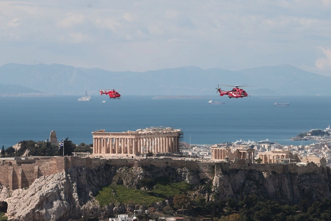 - 2 ελικόπτερα SH-70 και 1 αεροσκάφος ναυτικής συνεργασίας P-3B του Πολεμικού Ναυτικού και τα ελικόπτερα της Ελληνικής Αστυνομίας (1 EC-135, 1 BO-105), του Πυροσβεστικού Σώματος (2 AS-332 και BK-117) και του Λιμενικού Σώματος (1 DAUPHIN).
