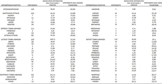 Αναλυτικά τα στοιχεία του ΕΟΔΥ