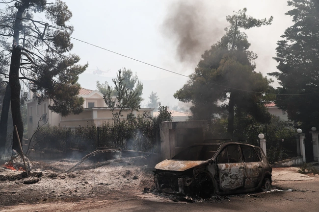 Στις εικόνες φαίνονται καμένα αυτοκίνητα αλλά και η υπερπροσπάθεια για να σωθούν περιουσίες.