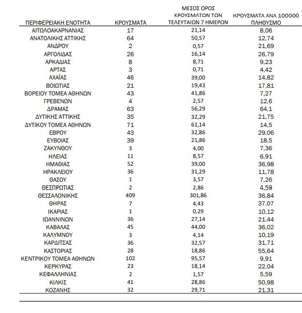 Αναλυτικά η κατανομή των κρουσμάτων σε όλη την Ελλάδα:
