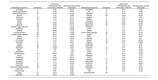 Tα κρούσματα στις περιφερειακές ενότητες που ανήκουν στην Αττική: