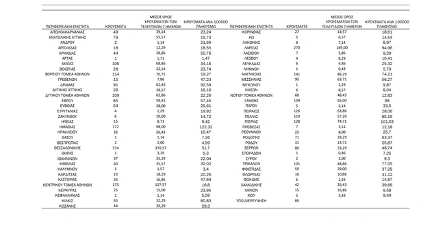 Αναλυτικά η κατανομή σε όλη τη χώρα