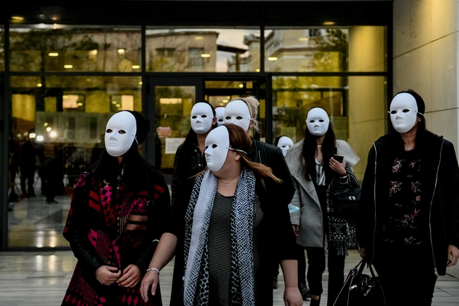 Με λευκές μάσκες στάθηκαν δίπλα στην Ιωάννα Παλιοσπύρου οι φίλες της μετά τη λήξη της δίκης της υπόθεσης που συγκλόνισε το πανελλήνιο. Μία κίνηση συμπαράστασης, μία κίνηση με την οποία οι άνθρωποι που βρέθηκαν στο πλευρό της Ιωάννας Παλιοσπύρου μετά την επίθεση με το βιτριόλι από την Έφη Κακαράντζουλα, θέλησαν να της δείξουν ότι δεν είναι μόνη της. Μία πραγματικά ιδιαίτερα συγκινητική σκηνή.