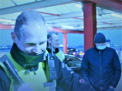 «Καλώς ήρθατε στο Brexit, κύριε», φαίνεται να λέει αστειευόμενος ένας από τους αξιωματικούς στο βίντεο, καθώς ο οδηγός παρακαλεί: «Μπορείτε να πάρετε το κρέας και να μου αφήσετε το ψωμί;».