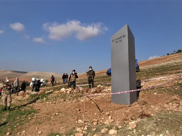 Ο περίεργος μονόλιθος, που μοιάζει σαν ένα μεγάλο μεταλλικό υποστήλωμα, βρέθηκε από έναν αγρότη την Παρασκευή στην επαρχία Σανλιούρφα της νοτιοανατολικής Τουρκίας. Πάνω του είναι λαξευμένο το ρητό: «Κοίτα τον ουρανό αν θες να δεις το φεγγάρι».