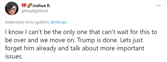 Ο Τζο Μπάιντεν βρίσκεται στην εξουσία μερικές μόλις εβδομάδες και η προεδρία Τραμπ δεν ήταν πριν 40 ή 400 χρόνια. Παρόλα αυτά υπάρχουν ήδη φωνές που μας καλούν να σταματήσουμε να μιλάμε για αυτόν.