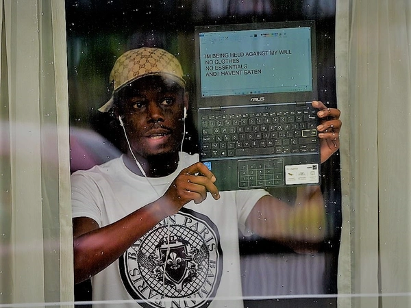 Ο 30χρονος είχε προηγουμένως επειδείξει ένα μήνυμα στον φορητό υπολογιστή του προς τα μέσα μαζικής ενημέρωσης που βρίσκονταν έξω από το ξενοδοχείο, το οποίο έλεγε: «Έχω κρατηθεί εδώ παρά τη θέλησή μου. Έχασαν τη βαλίτσα μου. Δεν έχω τίποτα. Δεν έχω τα απαραίτητα. Τους είπα ότι δεν μπορώ να αναπνεύσω. Η αστυνομία μου είπε ότι δεν μπορώ να φύγω χωρίς σημείωμα γιατρού. Παρακαλώ, στείλτε νομική βοήθεια ή κάτι τέτοιο. Ευχαριστώ.»