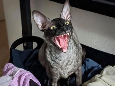 Η Καλχάγκεν εξηγεί ότι είναι οι εκφράσεις του γάτου της που αιφνιδιάζουν τον κόσμο, καθώς και τα δυσανάλογα μεγάλα μάτια, τα αυτιά και το μικρό κεφάλι του, κάτι που είναι χαρακτηριστικό της συγκεκριμένης ράτσας.