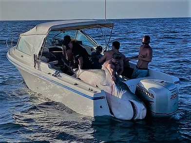 Οι ψαράδες χρειάστηκαν περισσότερα από 45 λεπτά για να βγάλουν από τα δίχτυα τους τον θανατηφόρο καρχαρία, πριν τον ανεβάσουν στο σκάφος και τον μεταφέρουν στην ακτή για να ζυγιστεί στο λιμάνι του Σίδνεϊ.