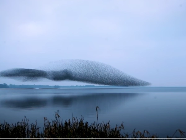 Με τα πολλά, μια μέρα ο φακός του αιχμαλώτισε ένα σμάρι ψαρόνια τη στιγμή που φούσκωνε στον ουρανό σχηματίζοντας ένα πελώριο πουλί.
