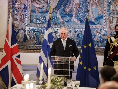 Κατά τη διάρκεια της ομιλίας του το βράδυ της Τετάρτης στο επίσημο γεύμα στο Προεδρικό Μέγαρο, ο πρίγκιπας Κάρολος εκεί που μίλαγε για τους αγωνιστές του 1821, όπως ο Κολοκοτρώνης, ο Καραϊσκάκης, ο Μιαούλης, ο Κανάρης υπέπεσε σε γλωσσικό ατόπημα αφού αποκάλεσε την Μπουμπουλίνα, «Μπουλουμπίνα».