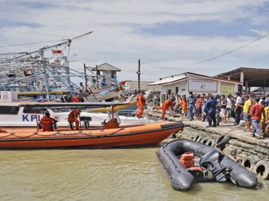 Διασώστες, περιλαμβανομένων δυτών από την πυροσβεστική υπηρεσία, αναζητούσαν σήμερα επιζώντες ενώ τις επιχειρήσεις έρευνας και διάσωσης δυσχέρανε η χθεσινοβραδυνή καταιγίδα.
