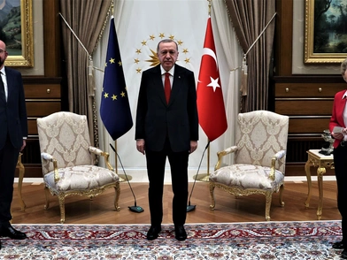 Κατά την επίσκεψη που πραγματοποίησαν την Τρίτη στην Άγκυρα οι επικεφαλής της Ε.Ε. για να συναντηθούν με τον Τούρκο πρόεδρο, μόλις εισήλθαν στο προεδρικό μέγαρο, υπήρχαν μόνο δύο καρέκλες στις οποίες κάθισαν ο Ερντογάν και ο πρόεδρος του Ευρωπαϊκού Συμβουλίου, Σαρλ Μισέλ.