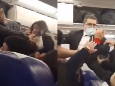 Η διαφωνία ξεκίνησε ανάμεσα σε δύο γυναίκες αλλά πολύ γρήγορα ενεπλάκησαν και άλλοι επιβάτες ενώ οι φροντιστές προσπαθούσαν απεγνωσμένα να τους ηρεμήσουν. Οι επιβάτες ωστόσο συνέχιζαν απτόητοι να καυγαδίζουν και κάποια στιγμή, όπως φαίνεται στο βίντεο, ένας άνδρας τραβάει μία γυναίκα από τα μαλλιά και έπειτα τη χτυπάει με γροθιές στο κεφάλι. Ο άνδρας την αφήνει από τα χέρια του όταν ένας από τους φροντιστές μπαίνει κυριολεκτικά στη μέση και το βίντεο τελειώνει με τους επιβάτες όρθιους στο διάδρομο να ουρλιάζουν ο ένας στον άλλον.