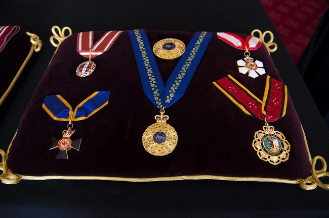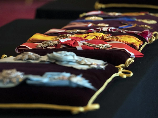 Τα επιλεγμένα διακριτικά του Φιλίππου, τα μετάλλια και τα εμβλήματα που του απονεμήθηκαν από το Ηνωμένο Βασίλειο και τις χώρες της Κοινοπολιτείας, θα τοποθετηθούν σε εννέα μαξιλάρια στο βωμό στο παρεκκλήσι του Αγίου Γεωργίου.