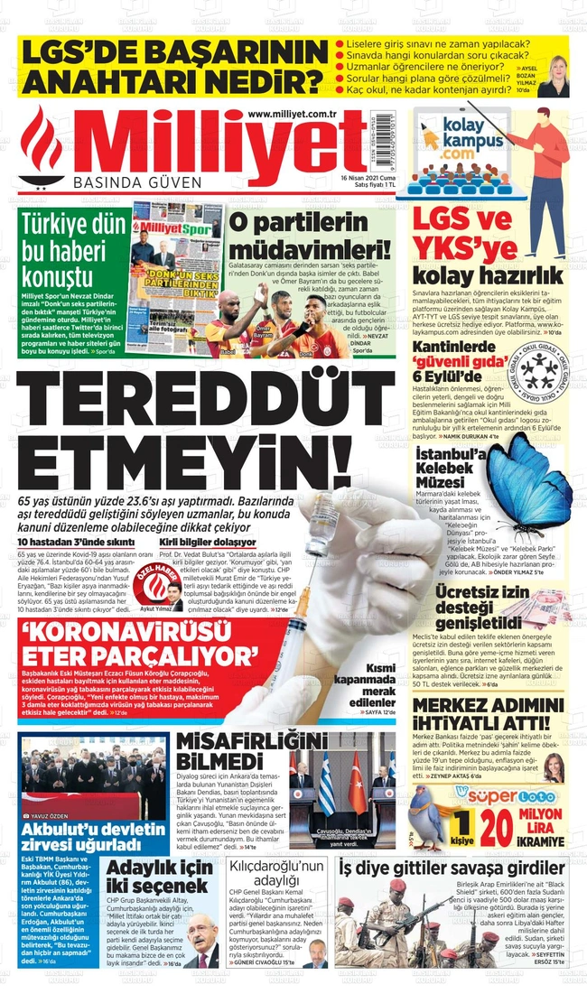 Ενδεικτικά είναι τα πρωτοσέλιδα των τουρκικών εφημερίδων, στα οποία η είδηση πάντως δεν έπαιξε πολύ ψηλά στην πρώτη σελίδα.