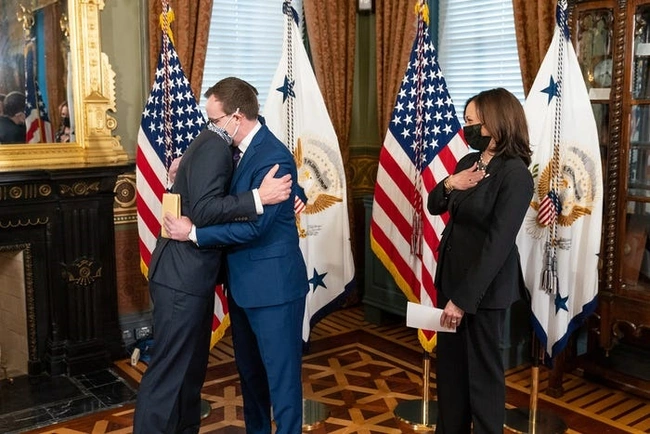 3 Φεβρουαρίου: Η Χάρις ορκίζει τον Πιτ Μπούτιτζετζ, καθιστώντας τον το πρώτο ανοιχτά γκέι μέλος του υπουργικού συμβουλίου