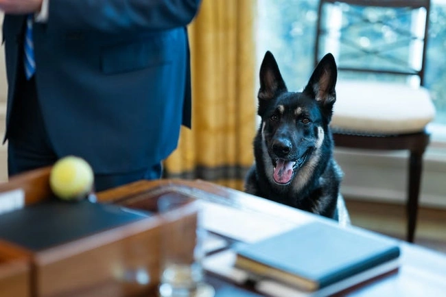 4 Μαρτίου: Ο σκύλος των Μπάιντεν Μέιτζορ βλέπει μια μπάλα τένις στο Οβάλ Γραφείο