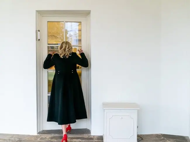 24 Μαρτίου: Η Τζιλ Μπάιντεν περιμένει στο παράθυρο έξω από το Οβάλ Γραφείο για να τρομάξει τον σύζυγό της