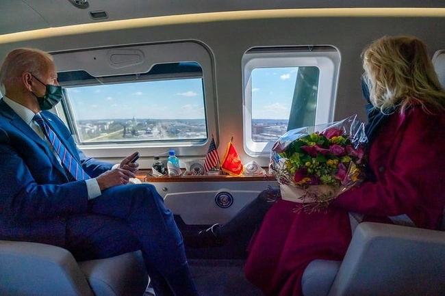 2 Απριλίου: Ο Πρόεδρος Τζο και η Τζιλ Μπάιντεν κοιτάζουν έξω από το παράθυρο του Marine One