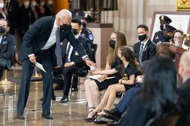 13 Απριλίου: Ο Μπάιντεν δίνει ένα ειδώλιο στην κόρη του νεκρού αστυνομικού του Καπιτώλιου Γουίλιαμ «Μπιλ» Έβανς
