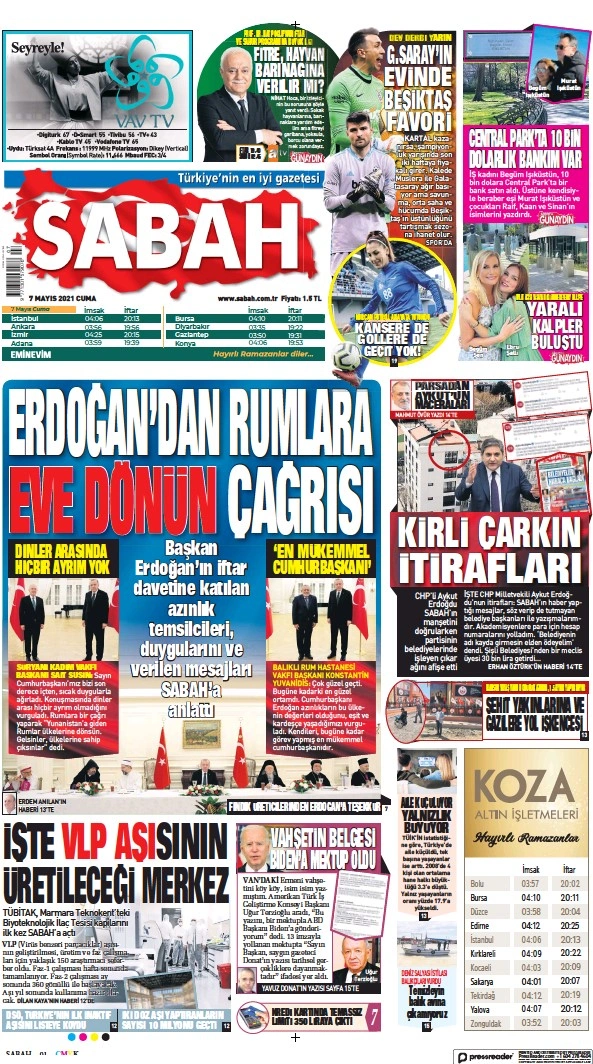 Παράλληλα σήμερα, Παρασκευή (7/5), η πλειοψηφία των τουρκικών ΜΜΕ, προβάλουν το πολύ καλό κλίμα, το οικείο και ζεστό κλίμα που υπήρξε σε αυτό δείπνο με τους ηγέτες των άλλων θρησκειών. Μάλιστα τα περισσότερα εξ αυτών έκαναν λόγο ότι «αγκάλιασε τις μειονότητες.