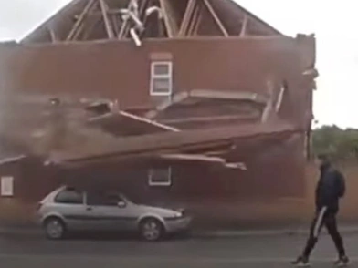 Το βίντεο καταγράφηκε στις 21 Μαΐου και ο τοίχος έδειχνε έτοιμος να καταρρεύσει αφού οι ροπές του αέρα εκείνη την ημέρα έφθαναν σχεδόν τα 100 χλμ/ώρα. Σύμφωνα όσα αναφέρει η Daily Mail, οι πυροσβέστες που έφτασαν στο σημείο ανέφεραν ότι δεν υπήρξε κάποιος νεκρός.