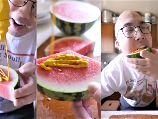 Στην Ελλάδα, αλλά και στην Τουρκία, όπως και στην Αίγυπτο, αρκετοί τρώνε το καρπούζι με φέτα, ένας blogger όμως το τερμάτισε: Έβαλε κάμποση μουστάρδα πάνω σε μια φέτα καρπουζιού και αποθέωσε το συνδυασμό! Ο Young Yuh, ο οποίος σαρώνει σε TikTok και Ιnstagram, υπεδειξε μάλιστα και συγκεκριμένη (αμερικανική) μάρκα μουστάρδας για το... γαρνίρισμα του καρπουζιού.