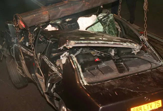 12:20 Το αυτοκίνητο κινείται προς τη γέφυρα Pont de l’Alma. Δεν το ξέρουν, μα ο χρόνος κυλά αντίστροφα. Στην είσοδο μιας σήραγγας, η θωρακισμένη Mercentes συγκρούεται με ένα λευκό Fiat Uno. Ο Πολ Ανρί χάνει τον έλεγχο του 2 τόνων αυτοκινήτου και αυτό χτυπάει με δύναμη στο κράσπεδο της σήραγγας. Τότε μπαίνει στο αντίθετο ρεύμα και από τη σύγκρουση σκοτώνονται ακαριαία ο Ντόντι και ο οδηγός. Ο Ρις Τζόουνς και η Νταιάνα τραυματίζονται βαριά. Εκείνη τη στιγμή, μέσα στη σήραγγα μπαίνουν με το αυτοκίνητό τους, ο γιατρός Φρεντερίκ Μεγιέζ Πεζό και ένας φίλος του. Ο γιατρός και η παρέα του επιστρέφουν προς το σπίτι από πάρτι γενεθλίων όπου είχαν βρεθεί νωρίτερα. Είχαν μάλιστα φύγει γιατί ο γιατρός είχε πρωί πρωί βάρδια και έπρεπε να ξεκουραστεί.