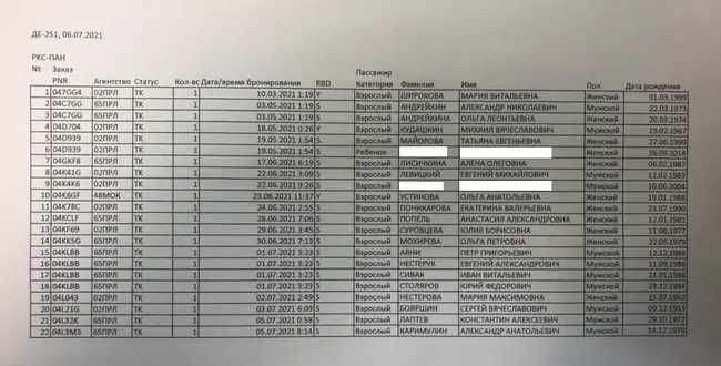 Η λίστα των επιβατών όπως τη δημοσίευσε το Ria Novosti