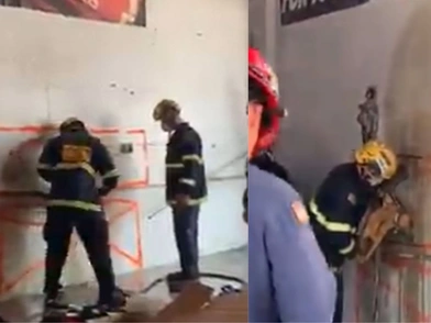 https://twitter.com/OCFA_PIO/status/1415084272721879040?ref_src=twsrc^tfwΒίντεο από την επιχείρηση κάνουν τον γύρο του διαδικτύου. Διακρίνονται τα τατουάζ στην πλάτη της και τα παπούτσια της, ενώ οι πυροσβέστες προσπαθούν να την ελευθερώσουν, ανοίγοντας μια τρύπα στον τοίχο. Την ίδια ώρα, συνάδελφοί τους προσπαθούν να την ηρεμήσουν μιλώντας της από το πλάι και εξασφαλίζοντας ότι αερίζεται επαρκώς με ανεμιστήρες.