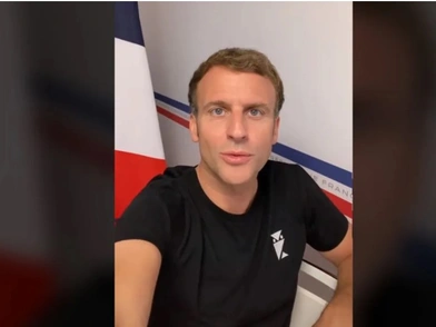 Ηλιοκαμένος και φορώντας ένα μαύρο t-shirt, ο Γάλλος πρόεδρος, που βρίσκεται σε διακοπές στο φρούριο του Μπρεγκανσόν, ανήρτησε στα μέσα κοινωνικής δικτύωσης ένα σύντομο βίντεο, διάρκειας ενός λεπτού, το οποίο τραβάει ο ίδιος, έχοντας μονάχα ως φόντο τη σημαία της Γαλλίας.