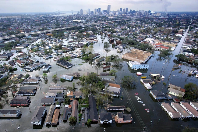 Άνεμοι με ταχύτητα 220 χιλιομέτρων την ώρα, σε συνδυασμό με καταιγιστική βροχόπτωση βυθίζουν το 80% της Νέας Ορλεάνης στο νερό, προκαλώντας καταστροφές σε υποδομές και σπίτια, ενώ οι νεκροί που επιπλέουν στους δρόμους και τα χωράφια είναι πάνω από 1.800.