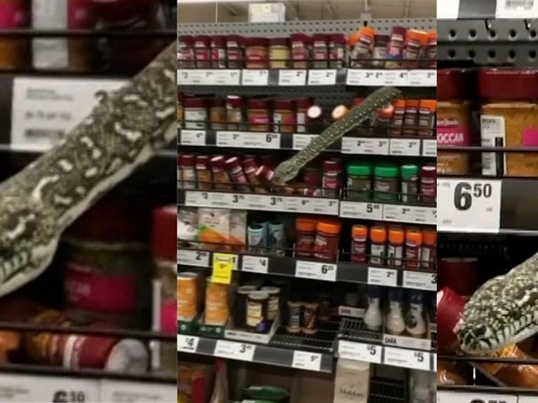 Πύθωνας μήκους τριών μέτρων προκάλεσε σοκ στους πελάτες σούπερ μάρκετ στο Σίδνεϊ της Αυστραλίας όταν εμφανίστηκε πίσω από ένα ράφι με μπαχαρικά! Ήταν ένας «ασυνήθιστος πελάτης που ξεγλίστρησε», ανέφερε το κατάστημα.