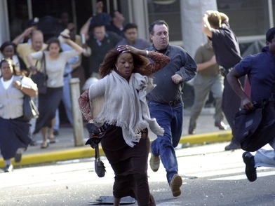 Φεύγω από το πανεπιστήμιο για να βρω μια παρέα φίλων σε γειτονική εστία. Ούτε σκέψη να μπω στο μετρό – θεωρώ πως οι τρομοκράτες θα χτυπήσουν κι εκεί – αν και οι συρμοί έχουν ήδη σταματήσει να κινούνται. Στο δρόμο κόσμος τρέχει, οι περισσότεροι θέλουν να φύγουν από το Μανχάτταν και να επιστρέψουν σπίτι τους, πρέπει όμως να περάσουν τις γέφυρες και κανένα μεταφορικό μέσο δεν λειτουργεί. Οι περισσότεροι αποφασίζουν να φύγουν πεζή αν και αρκετοί φοβούνται πως και οι γέφυρες αποτελούν σημεία πιθανής τρομοκρατικής επίθεσης.