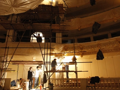 Η παράσταση του Sadko, μιας όπερας του 19ου αιώνα διακόπηκε άμεσα με την ορχήστρα να σταματά απότομα και τους ηθοποιούς να φωνάζουν ζητώντας από τους τεχνικούς να ανεβάσουν το σκηνικό που καταπλάκωσε τον άτυχο ηθοποιό.
