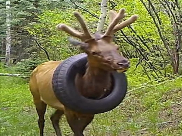 Τη μισή ζωή του, σχεδόν δυο χρόνια, έζησε με ένα βαρύ λάστιχο στο λαιμό του, ένας τάρανδος στο Κολοράντο των ΗΠΑ ο οποίος τελικά κατάφερε να απαλλαγεί απο το βάρος του όταν τον εντόπισαν οι δασοφύλακες που φρόντισαν να τον απελευθερώσουν. Το εντυπωσιακό αρσενικό ζώο, ηλικίας 4,5 ετών και βάρους περίπου 300 κιλών, εντοπίστηκε το βράδυ του περασμένου Σαββάτου στα νοτιοδυτικά του Ντένβερ στις ΗΠΑ. Αφού τον νάρκωσαν, οι δασοφύλακες δεν είχαν άλλη λύση παρά να του κόψουν τα μακριά κέρατά του για να καταφέρουν να βγάλουν το ελαστικό.