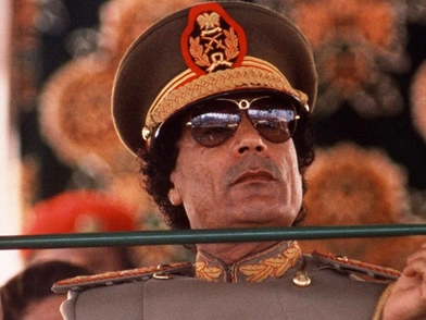 Ήταν σκληρός, δεσποτικός και αιμοσταγής δικτάτορας της Λιβύης επί 42 χρόνια. Οι αντίπαλοί του συνθλίβονταν μέσα στο παλάτι! Αποκαλούσε τον εαυτό του: «Ο ηγέτης αδελφός», «Ο οδηγός της εποχής των μαζών», «Ο βασιλιάς των βασιλιάδων της Αφρικής» και το αγαπημένο του «Ο ηγέτης της επανάστασης». Οι ισχυροί τοης Γης όμως είχαν άλλα προσωνύμια γι αυτόν: Ο αμερικανός πρόεδρος Ρόναλντ Ρίγκαν τον αποκαλούσε «Ο τρελός σκύλος της Μέσης Ανατολής» και ενώ ο πρόεδρος της Αιγύπτου Ανουάρ Σαντάτ τον κατονόμαζε «Ο τρελός της Λιβύης».