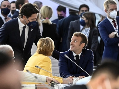 Οι δύο ηγέτες δεν μίλησαν μεταξύ τους. Ο Τζόνσον εμφανίστηκε πιο φιλικός με τον Αμερικανό πρόεδρο, τον οποίο χαιρέτισε με ένα ηχηρό «Ε, Τζο!», παίρνοντας τη θέση του. Ο Μακρόν έσφιξε θερμά και με τα δύο χέρια εκείνο που του έτεινε ο Μπάιντεν, προτού να του δώσει και ένα φιλικό χτύπημα στον ώμο. Ένας εκπρόσωπος του Λευκού Οίκου είπε ότι Παρίσι και Ουάσινγκτον έχουν «συμφιλιωθεί» και οι μελλοντικές επαφές τους θα είναι «ενθουσιώδεις».