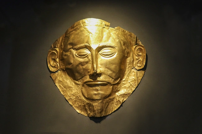 1.Θησαυρό από χρυσά αντικείμενα που βρέθηκε το 1876 κατά τη διάρκεια της ανασκαφής στις Μυκήνες από τον Ερρίκο Σλήμαν/ Ανάμεσά του βρίσκεται και το χρυσό προσωπείο του Αγαμέμνονα.