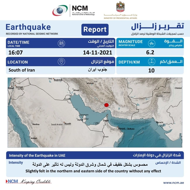 «Οι σεισμός έγινε αισθητός σε αρκετές πόλεις του Νοτίου Ιράν στην επαρχία Ορμοζγκάν» δήλωσαν τοπικοί άρχοντες της περιοχής που βρίσκεται περίπου 50 χιλιόμετρα νότια από την πόλη Μπαντάρ Αμπάς. Το Ιράν εξαιτίας του γεωλογικού υπόβαθρου των ρηγμάτων του, έχει πληγεί από αρκετούς καταστροφικούς σεισμούς κατά τα τελευταία χρόνια.