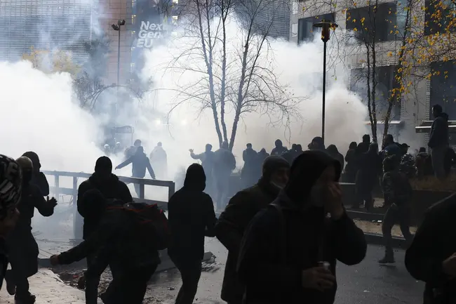Σύμφωνα με πληροφορίες που μεταδίδουν τα βελγικά ΜΜΕ, πυροτεχνήματα εκτοξεύτηκαν κατά της αστυνομίας, πριν μπουν σε δράση τα κανόνια νερού και τα δακρυγόνα από την πλευρά των βελγικών αρχών. Εικόνες που αναρτήθηκαν στα μέσα κοινωνικής δικτύωσης δείχνουν επίσης πολλά αστυνομικά οχήματα να βανδαλίζονται. Η διαδήλωση υπόκειται στην έγκριση του δήμου των Βρυξελλών και καθορίστηκε μια διαδρομή στη «rue de la Loi», στην καρδιά των ευρωπαϊκών θεσμών στις Βρυξέλλες. Στον τερματισμό είχε στηθεί εξέδρα για να γίνουν ομιλίες.