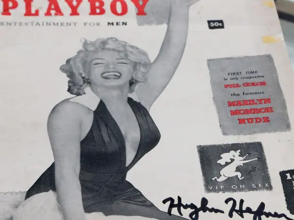 «Για το πρώτο τεύχος ήθελα να κάνω κάτι εντυπωσιακό. Έτσι σκέφτηκα να κάνω μια γυμνή εικονογράφηση, η οποία θα ήταν εμφανής με 3-D γυαλιά. Η ιδέα ήταν τέλεια, αλλά τα γυαλιά πολύ ακριβά. Την ίδια στιγμή ανακάλυψα ότι το γυμνό ημερολόγιο της Μέριλιν Μονρόε - που όλοι είχαν ακούσει αλλά κανείς δεν είχε δει - ανήκε στην εταιρεία ημερολογίων John Baumgarth λίγο έξω από το Σικάγο. Αποφάσισα να δοκιμάσω την τύχη μου. Πήγα, μίλησα στον John Baumgarth και έφυγα από εκεί με τα δικαιώματα, μόλις για 500 δολάρια» είχε πει σε παλαιότερη συνέντευξή του ο Χιου Χέφνερ.