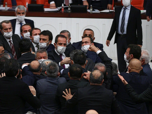 Η έκρυθμη κατάσταση που υπάρχει εδώ και εβδομάδες στην Τουρκία, απόρροια των οικονομικών προβλημάτων και τις ακρίβειας που έχει υποβαθμίσει το βιοτικό επίπεδο των πολιτών, αποτυπώθηκε με τον πιο χαρακτηριστικό τρόπο στο κοινοβούλιο. Με τους πολιτικούς, μέλη κυβέρνησης και αντιπολίτευσης, να πιάνονται στα χέρια και να παίζουν ξύλο... δρόμου στα έδρανα.
