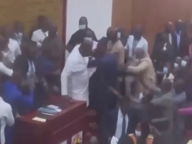 Τα μέλη του κοινοβουλίου κινήθηκαν απειλητικά προς μπροστινό μέρος της αίθουσας όταν ο ο αντιπρόεδρος Τζόζεφ Οσέι-Οβουσού πρότεινε να συζητηθεί και να ψηφιστεί ο φόρος με εσπευσμένη διαδικασία «επείγοντος». Κάποιοι τοu έριξαν στις μπουνιές και συνεπλάκησαν ενώ άλλοι προσπαθούσαν να συγκρατήσουν συναδέλφους στους.
