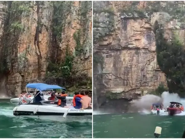 Το πελώριο κομμάτι του επιβλητικού όγκου βράχων ξαφνικά αποκολλήθηκε από το φαράγγι κι έπεσε πάνω σε σκάφη που έπλεαν στα πράσινα νερά της λίμνης Φούρνας, στην περιοχή Καπιτόλιου, στην πολιτεία Μίνας Ζεράις. Σε δραματικά αποσπάσματα βίντεο που μεταφορτώθηκαν σε ιστότοπους κοινωνικής δικτύωσης, ακούει κανείς τις κραυγές πανικού των τουριστών καθώς ο πελώριος όγκος βράχων πέφτει στο νερό, συνθλίβοντας τρία πλεούμενα.