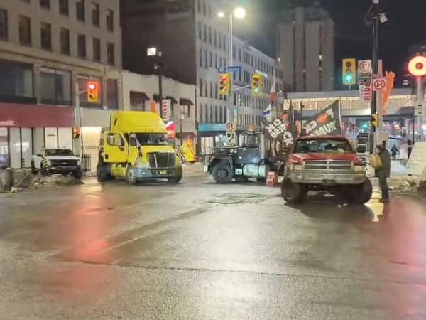 Χιλιάδες χιλιόμετρα μακρύτερα, διαδηλωτές απέκλεισαν ξανά το συνοριακό πέρασμα Κουτς, στην Αλμπέρτα του δυτικού Καναδά, καθώς και γύρω από το κοινοβούλιο του Γουίνιπεγκ στη Μανιτόμπα, στα κεντρικά της χώρας.